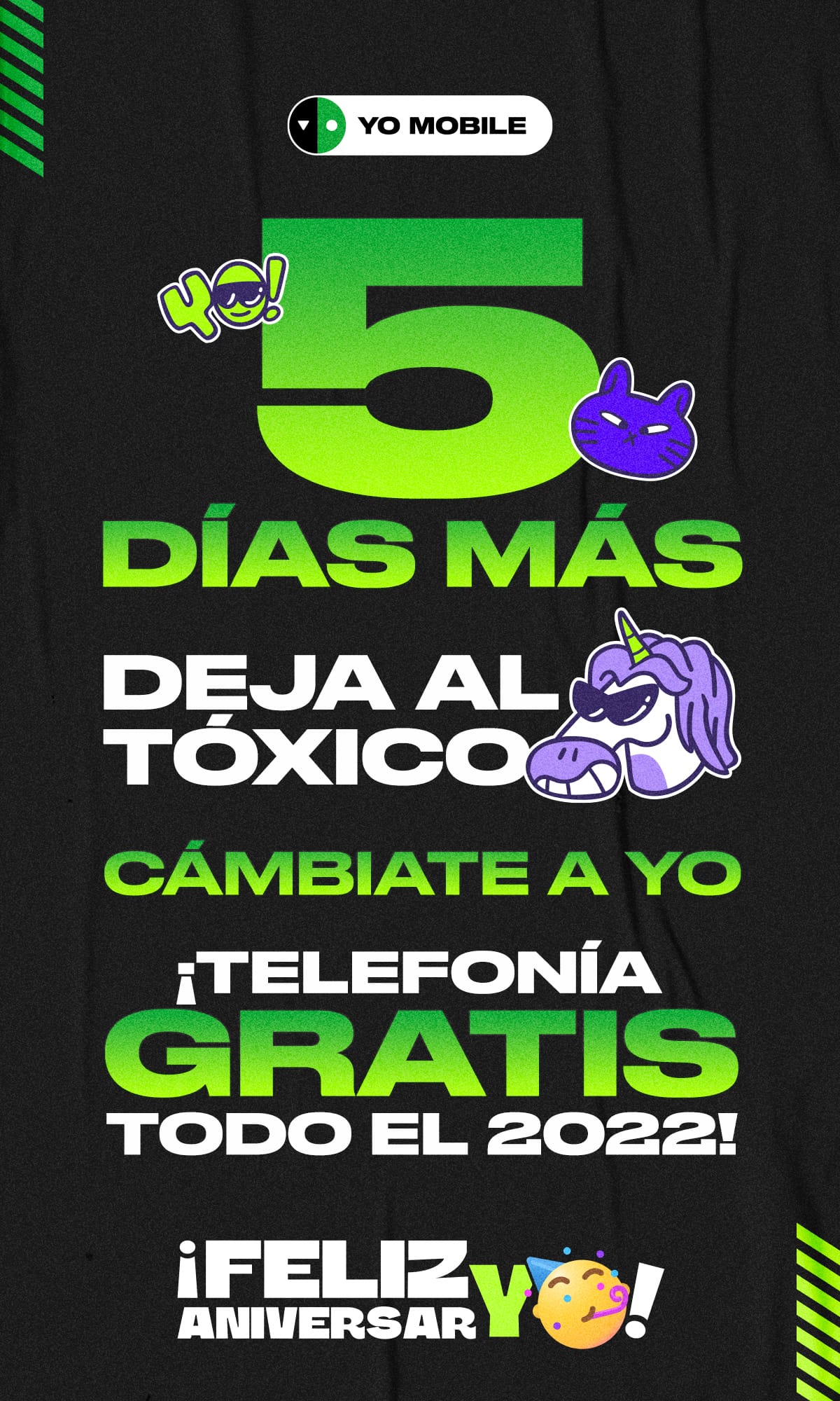 Con la misión de revolucionar la telefonía tradicional y ofrecer una opción digital accesible para todos, YO Mobile llegó a México en 2020 con un carácter progresista, liberador e innovador. Para celebrar su aniversaYO de llegada al país regalan a sus usuarios el plan de telefonía completo para todo el 2022. Este regalo únicamente tendrá validez hasta el 31 de Enero de 2022 (faltan 6 días!) y para canjearlo únicamente tienes que cambiar tu número a Yo Mobile.
