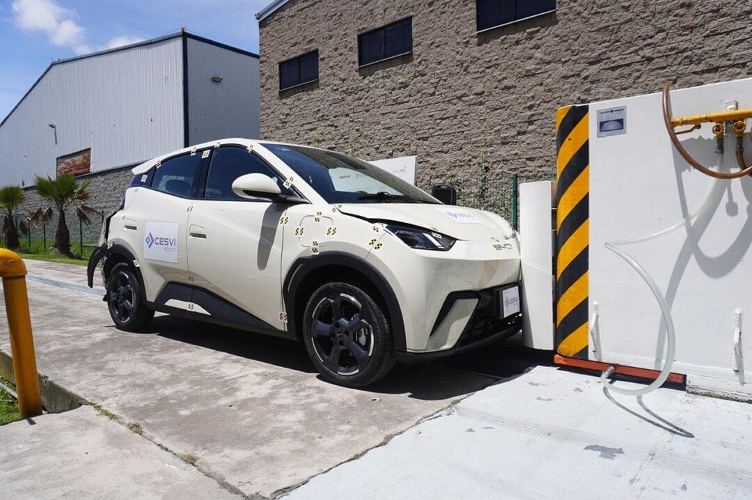 Toluca, México, septiembre de 2024. CESVI MÉXICO, (Centro de Experimentación y Seguridad Vial) llevó a cabo las pruebas de impacto frontal y trasera del vehículo 100% eléctrico, BYD Mini Dolphin 2024, en sus instalaciones de esta ciudad.