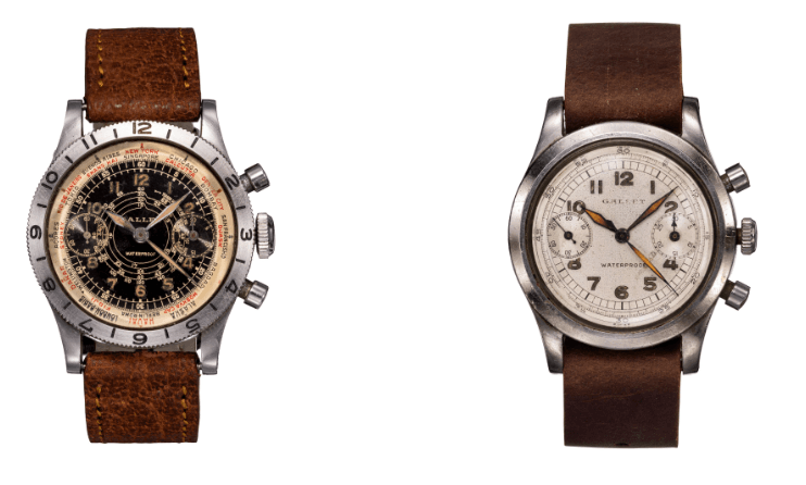 Igualmente significativo fue el MultiChron Clamshell, presentado en 1938, uno de los primeros cronógrafos sumergibles, diseñado para resistir el polvo, la humedad y las fuertes lluvias. Con varias iteraciones adaptadas a las carreras automovilísticas, la navegación de velocidad, la aviación y otros deportes, la serie MultiChron se convirtió en una piedra angular del legado de Gallet.