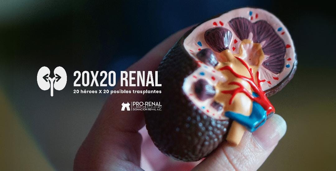 ●      El Centro Mexicano Pro Donación Renal (Pro-Renal) A.C busca cambiar vida con “20X20 RENAL: 20 héroes, 20 posibles trasplantes”, una campaña que tiene por objetivo encontrar a 20 pacientes que requieran un trasplante de riñón y 20 donadores. La meta es conseguirlo en 1 mes para financiar su protocolo y buscar compatibilidades para posibles trasplantes.