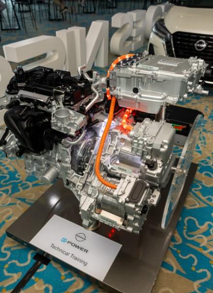 Los vehículos e-POWER cuentan con una batería de iones de litio liviana y compacta y dos motores: uno eléctrico, que impulsa el vehículo, y otro de gasolina, que genera la electricidad. Un inversor compacto gestiona la distribución de energía, permitiendo que el vehículo recargue la batería mientras se conduce, sin necesidad de conectarse a una fuente externa.