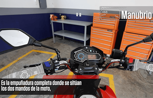 • Manubrio: es la empuñadura completa en donde se sitúan los dos mandos de la moto y funciona para dar movimiento al eje delantero.