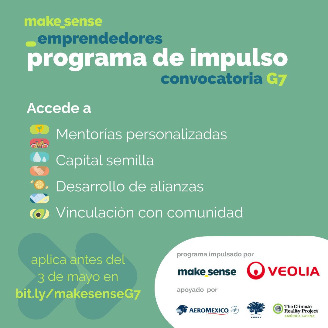 La convocatoria para formar parte del Programa de Impulso a Emprendedores Socio-ambientales cerrará el 3 de mayo. Es una iniciativa colaborativa y multisectorial, impulsada por Veolia México y makesense, con la colaboración de Aeroméxico, Ashoka México y The Climate Reality Project América Latina.