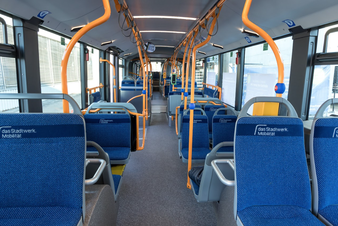 La empresa de transporte “das Stadtwerk.Mobilität” recibió ocho nuevos autobuses articulados totalmente eléctricos eCitaro G de 18,13 metros, ampliando su flota eléctrica a un total de 20 unidades. Desde 2021, doce autobuses eCitaro de 12,14 metros ya se encuentran en operación, consolidando la experiencia de la compañía con soluciones de electromovilidad desarrolladas por Daimler Buses. Cada unidad ofrece capacidad para 110 pasajeros y dispone de 45 asientos azules identificados con el logotipo institucional, además de rampa de acceso para personas con movilidad reducida. Los nuevos vehículos cumplen con el “Reglamento General de Seguridad” de la Unión Europea e integran avanzados sistemas de asistencia, entre ellos Asistencia Preventiva de Frenado 2, Asistencia de Guardia Lateral 2, asistencia de señales de tráfico, asistencia de atención, Asistencia de Guardia Frontal y cámara de visión trasera.
