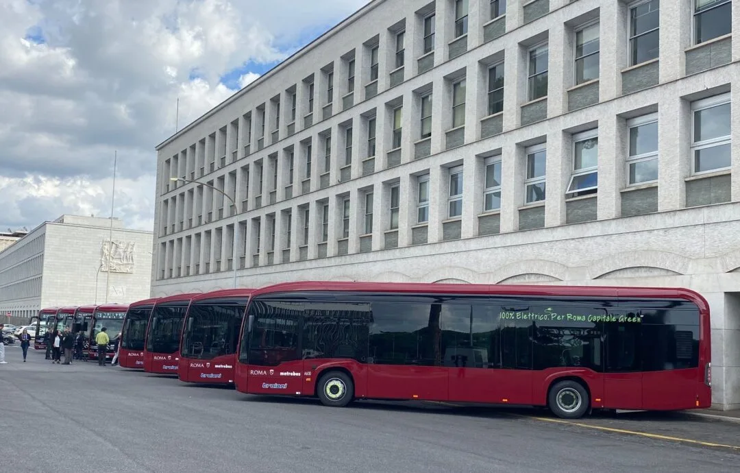 Esta transición hacia la movilidad eléctrica comenzó a principios de 2024 con la compra de 40 autobuses híbridos Mercedes-Benz Citaro, como parte de un plan para electrificar el transporte público en los suburbios de Roma. De los 110 autobuses eCitaro encargados, 65 estarán equipados con baterías NMC3, alcanzando una autonomía de hasta 280 kilómetros, mientras que las 45 unidades restantes llevarán baterías NMC4 de próxima generación. Cada autobús urbano, de 12 metros de largo, luce el color rojo oscuro característico de Roma con letras blancas. Así como, el nuevo eCitaro cumple con los estándares de seguridad de la UE (GSR-B).