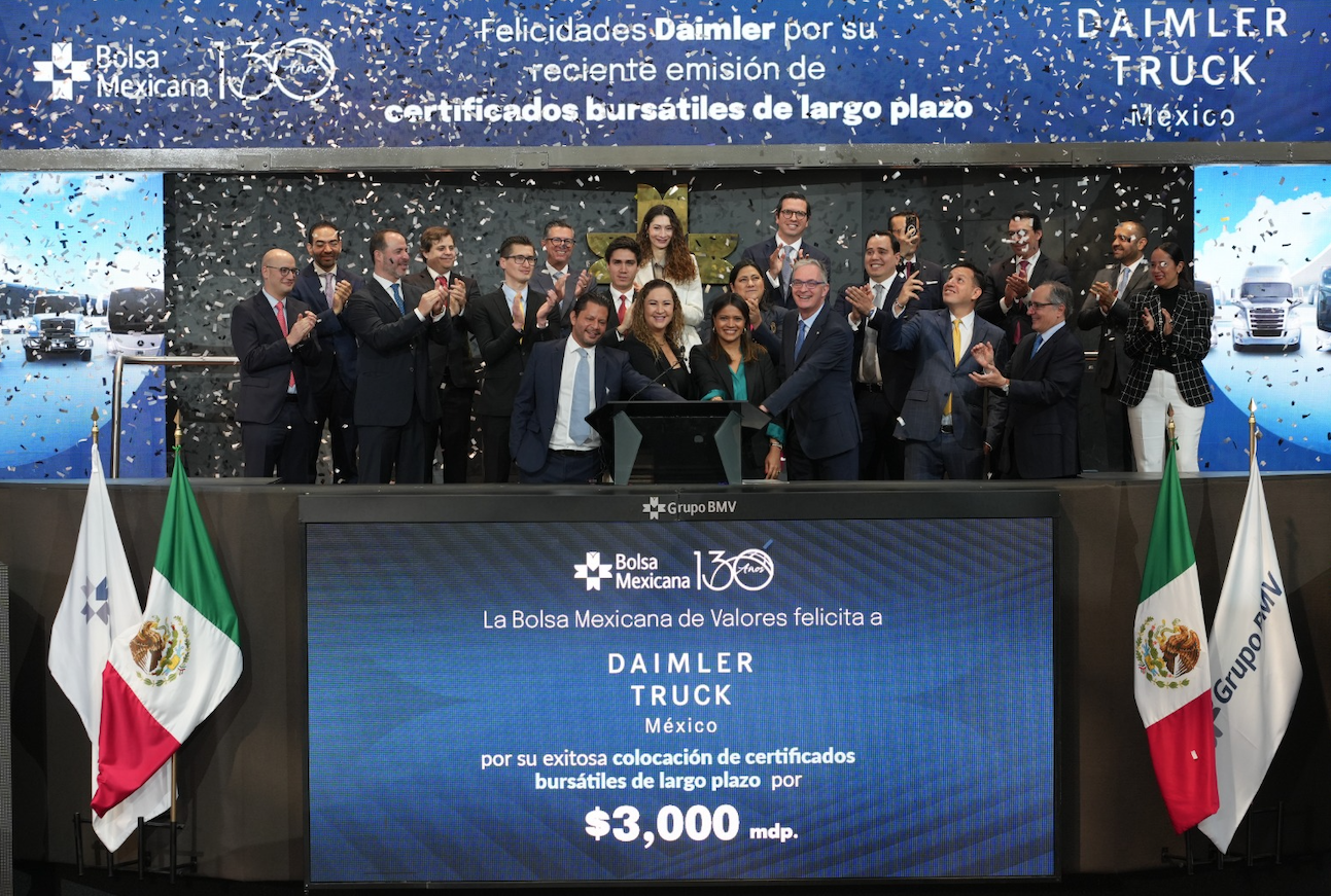 Ciudad de México, julio de 2025 – Daimler México, empresa de servicios de tesorería e impuestos del grupo Daimler Truck Mexico, concluyó con éxito la colocación de su nueva emisión de bonos corporativos listada en la Bolsa Mexicana de Valores (BMV), alcanzando un monto total de MXN 3,000 millones, con una sobresuscripción de 2.02 veces sobre el objetivo inicial.