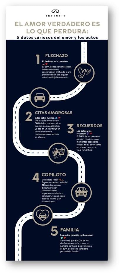 - El flechazo a primera vista: Como en un romance, el diseño sofisticado y la innovación de INFINITI cautivan al instante. Los modelos de INFINITI combinan lujo japonés, tecnología avanzada y seguridad premiada, con reconocimientos como el IIHS Top Safety Pick.