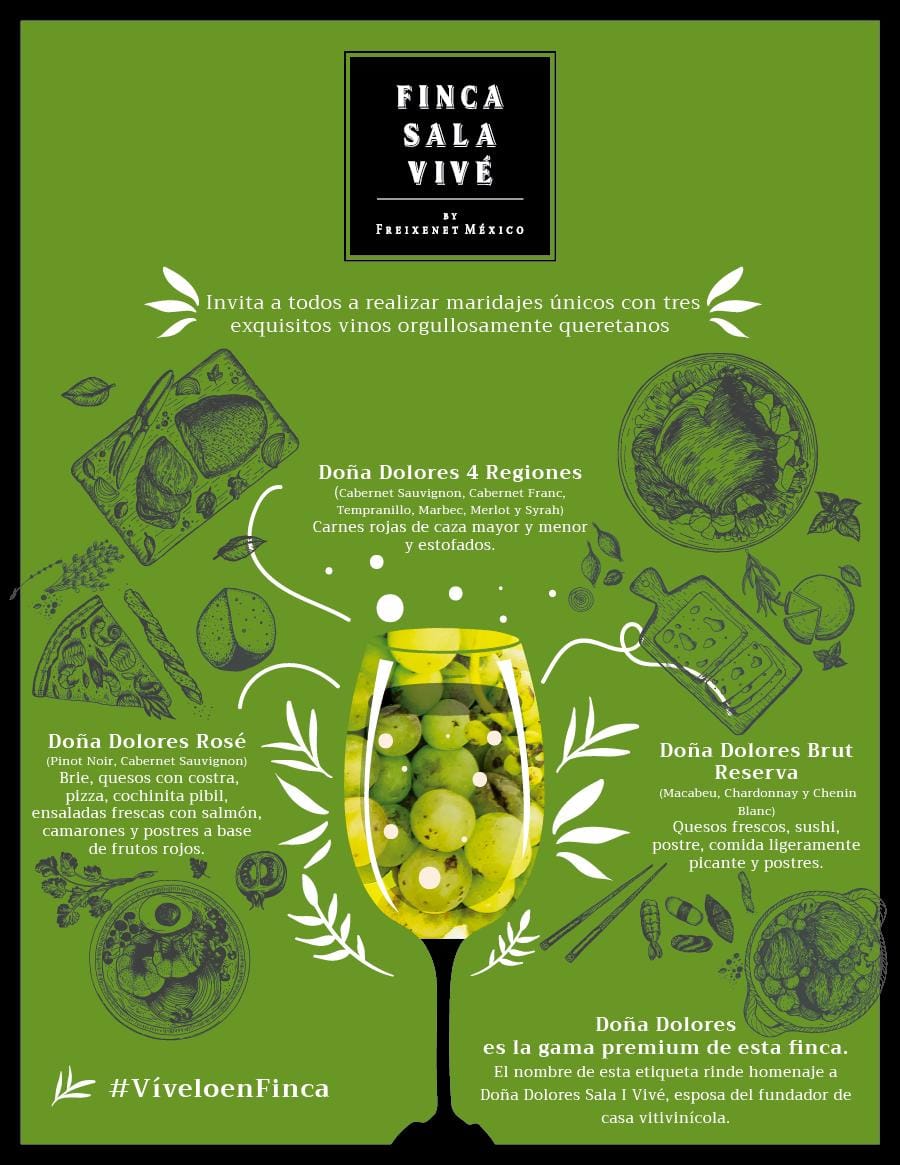 Te comparto esta infografía con propuestas de maridaje con cuatro distintas etiquetas de Finca Sala Vivé by Freixenet México, la casa productora de vinos espumosos más importante de nuestro país.