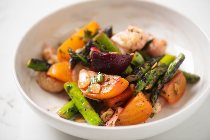 Como chef y desarrollador de productos con enfoque en nutrición, las almendras son uno de los ingredientes que más uso cuando formulo una variedad de necesidades de consumo. Con 6 gramos de proteína por onza, las almendras pueden ser el eslabón perdido que permite brindar proteínas completas en comidas vegetales. Muchas proteínas vegetales son bajas en uno o más aminoácidos para poder considerarse “proteína completa”, pero si unimos las proteínas vegetales con perfiles contrarios—o complementarios—podemos obtener una proteína completa. Combinar proteínas vegetales complementarias al mezclar, cocinar, hornear o licuar los ingredientes en sus muy diversas y disponibles formas permite que sea más accesible proveer la cantidad y calidad de proteína deseada, y sabemos que esto es cada vez más importante para los consumidores actuales.