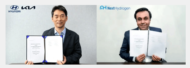 Ciudad de México, julio de 2021.– Hyundai Motor Company y Kia Corporation firmaron un acuerdo con Next Hydrogen Corporation, una empresa canadiense especializada en tecnología de electrólisis de agua y subsidiaria de Next Hydrogen Solutions Inc., para reforzar sus esfuerzos para marcar el comienzo de una sociedad global del hidrógeno a través de una producción rentable de hidrógeno limpio.Según el acuerdo, las empresas desarrollarán conjuntamente un sistema de electrólisis de agua alcalina y la pila relacionada con el fin de generar hidrógeno limpio de manera económica, así como explorar nuevas oportunidades comerciales y aplicaciones tecnológicas.