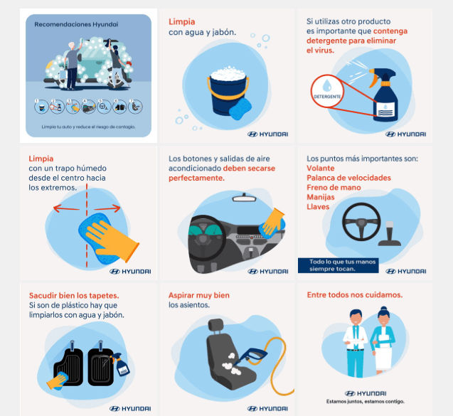 ayudar a sus clientes, y a toda persona que tenga un auto, Hyundai hace un llamado para que limpien de forma regular sus vehículos, en especial los elementos con los que se tiene un mayor contacto con las manos,