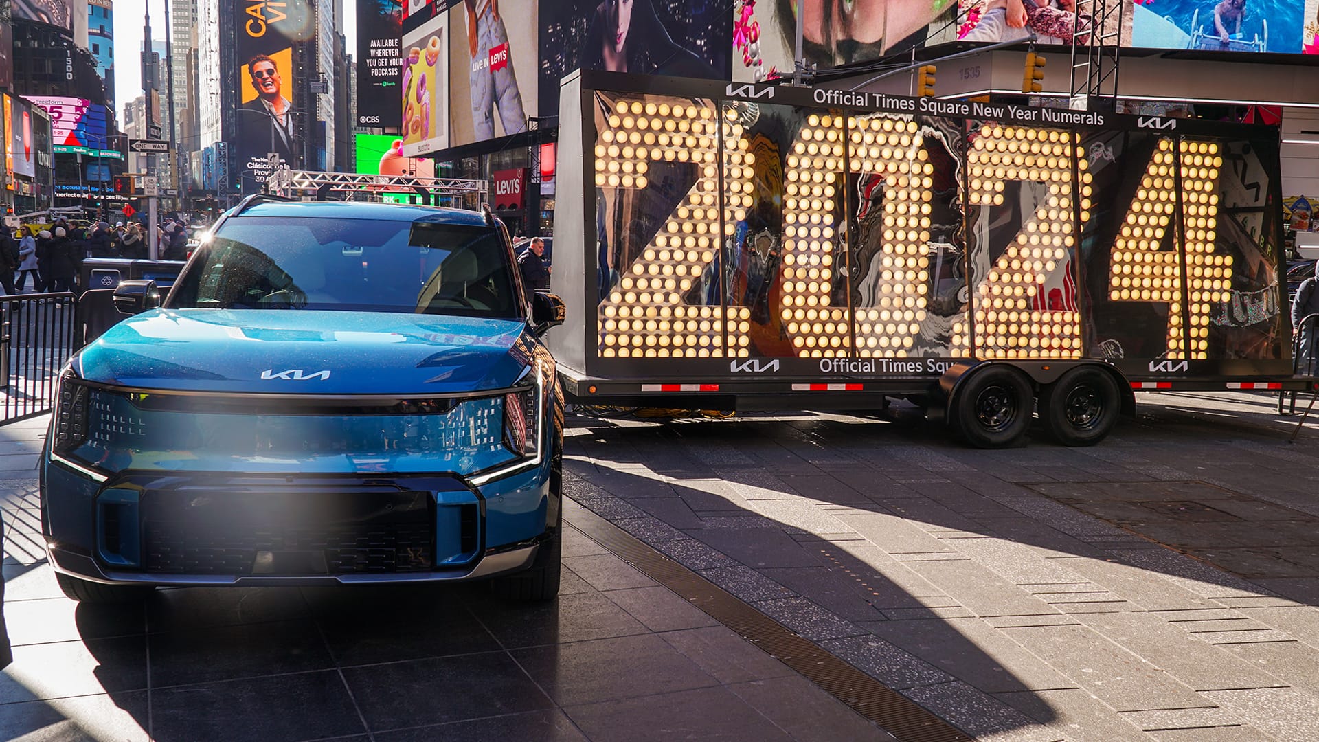Irvine, California, diciembre de 2023.- La cuenta regresiva para el 2024 comenzó oficialmente en el famoso Times Square de la ciudad de Nueva York. Los esperados numerales “2024” que iluminarán el cielo cuando el reloj marque las 12 y la renombrada bola de cristal caiga llegaron transportados por la totalmente nueva SUV eléctrica de tres filas, Kia EV9 luego de completar un viaje de costa a costa que comenzó en noviembre en Los Ángeles.