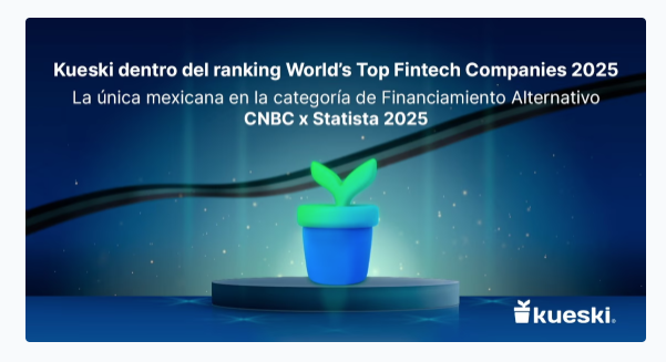 Guadalajara, México, julio de 2025 – CNBC en colaboración con Statista, dio a conocer su lista World’s Top FinTech Companies 2025, en la que Kueski, la empresa líder en soluciones Buy Now, Pay Later (BNPL) y préstamos al consumo en línea, aparece como la única empresa mexicana reconocida dentro de la categoría de Alternative Financing, con lo que se confirma su posición como pionera en inclusión financiera e innovación tecnológica en la región.