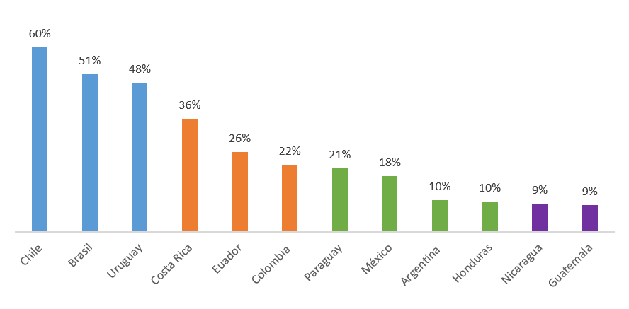 | Fuente: Elaborado por The Competitive Intelligence Unit con información de operadores y reguladores, 2020 La gráfica anterior muestra la proporción de líneas de pospago en una muestra representativa de países de la región de Latinoamérica. Entre los países con una mayor proporción de usuarios bajo esta modalidad se encuentran: Chile (59.6%), Brasil (50.8%) y Uruguay (48.1%). En el caso de Chile, se registra un aumento notable de las líneas de pospago. La creciente preferencia de esta modalidad es atribuible a la competencia agresiva de los operadores en términos de oferta. Este impulso competitivo es manifiesto desde la entrada de WOM al mercado, cuyas tarifas y abundancia de servicios resultaron tan atractivos y disruptivos (“agente líder”), que sus competidores adoptaron el papel de “agentes seguidores” tuvieron que actualizar precios, lanzar nuevas ofertas y beneficios para buscar la retención de sus clientes. Por este motivo, los planes pospago son cada vez más asequibles e incluyen una mayor variedad de beneficios, propiciando una transición a líneas de pospago. A su vez, Uruguay destaca como el país sudamericano con mayor desarrollo y profundización en el uso de las TIC, lo que propicia un ambiente favorable hacia la contratación de la modalidad pospago, al contar con una dotación de infraestructura abundante y de última generación para hacer uso de servicios avanzados y de mayor calidad, como el 5G. Así, los usuarios tienen mayor disposición a la contratación de la modalidad de pospago frente al de prepago o recarga, lo que resulta en una de adopción líneas pospago cercana al 50% (48.1%) al cierre de 2020. En contraste, países como México (18.0%), Argentina (10.2%), Honduras (9.7%), Nicaragua (9.0%) y Guatemala (8.5%), son los de menor proporción de líneas móviles bajo la modalidad pospago. Lo anterior se debe a las condiciones socioeconómicas en estos países, en los que la crisis económica y los bajos niveles de bancarización, aunados a estructuras de mercado concentradas y ofertas dirigidas principalmente al mercado prepago, son algunos de los factores que explican esta circunstancia. Entre los principales motivos detrás de la decisión del usuario para elegir la modalidad de contratación de su servicio móvil destaca una preferencia por menores precios, es decir, la búsqueda de alternativa de consumo más baratas o que le generen ahorros. La modalidad de pospago representa una mejor oferta a partir de una mayor disponibilidad y abundancia de datos y comunicación ilimitada a precios más bajos en su comparativo con aquella de prepago. La identificación los determinantes de la contratación de servicios móviles de prepago o pospago al interior de cada país es menester, pues las estructuras de mercado y mecanismos regulatorios son distintos y ello incide en la dinámica de demanda y preferencia de la oferta de los servicios móviles. La prevalencia de condiciones competitivas y atractivas en ambas modalidades es necesaria, a la luz de la coyuntura económica global que obstaculiza la transición al esquema de pospago para un extenso volumen de usuarios en la región. |