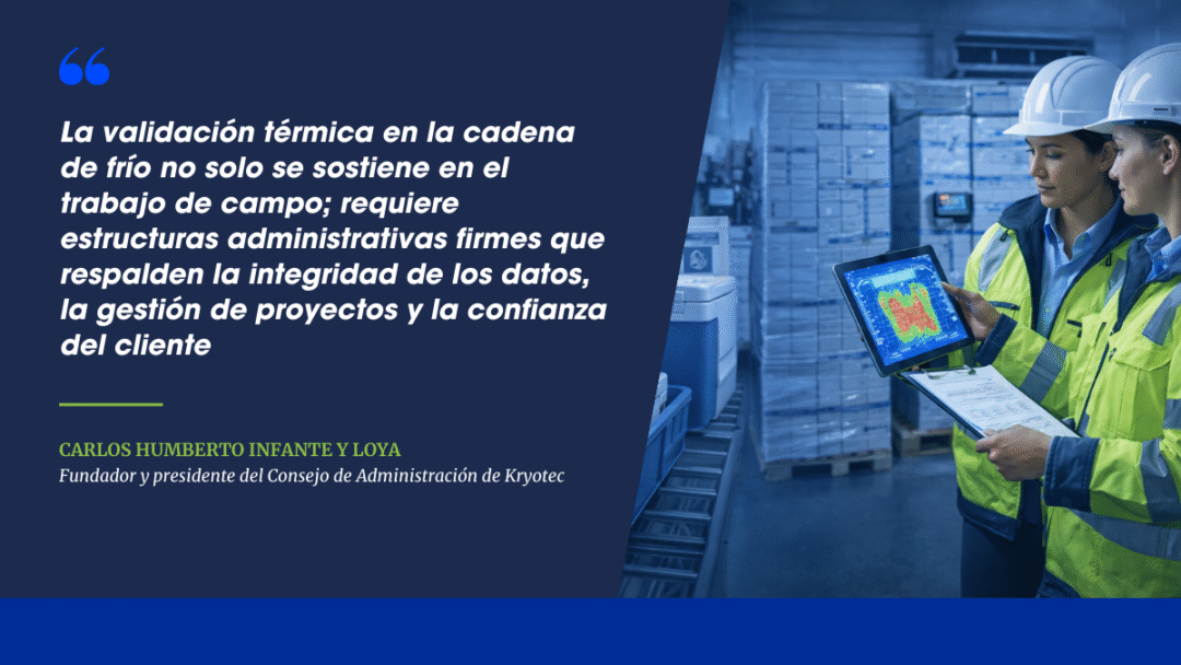 Carlos Humberto Infante y Loya, fundador y presidente del Consejo de Administración para Kryotec, señala que la validación “implica estudios de mapeo térmico, identificación de puntos críticos, análisis de escenarios de riesgo, interpretación de datos y toma de decisiones informadas. Es, en esencia, una disciplina que combina ingeniería, metrología, estadística, gestión de calidad y conocimiento profundo del producto para cumplir la regulación y lograr el control de la temperatura requerido en la cadena de frío”.