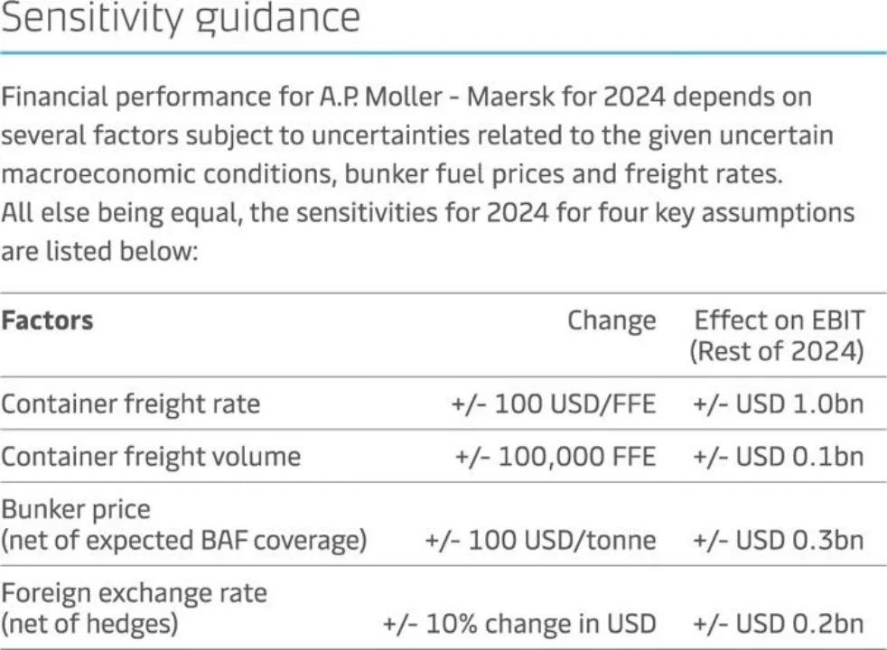 Para todo el año 2024, A.P. Moller – Maersk eleva su orientación financiera como se ve en la siguiente tabla: