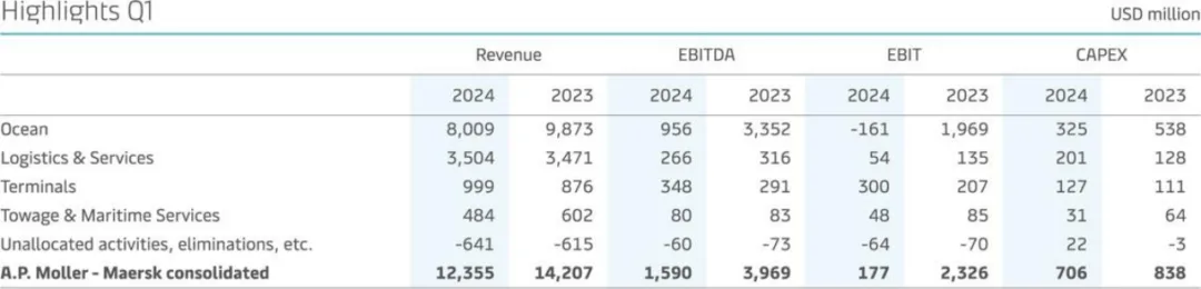 Ciudad de México, mayo de 2024.– A.P. Moller – Maersk (Maersk) registró un primer trimestre en línea con las expectativas, con una fuerte recuperación de las ganancias en comparación con el cuarto trimestre de 2023. Los resultados fueron impulsados por un buen desempeño en Terminales, al igual que la combinación de una mayor demanda y la crisis prolongada en el Mar Rojo. Como se espera que estas condiciones continúen hasta bien entrada la segunda mitad del año, Maersk eleva el extremo inferior de su rango de orientación y ahora espera un EBIT subyacente de USD -2.0 a 0.0 mil millones.