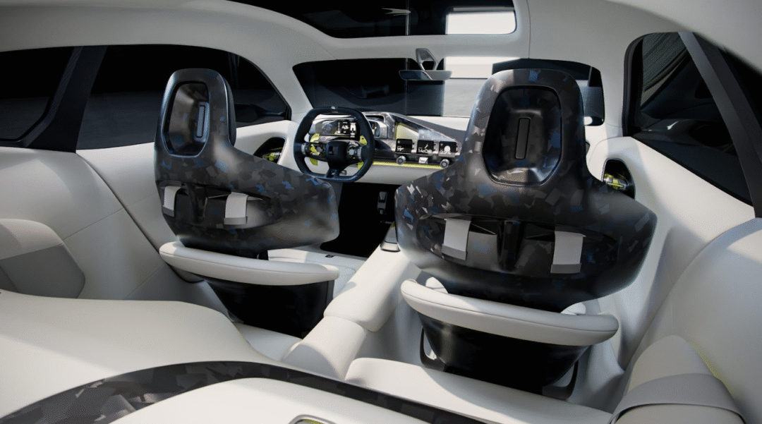 Una estructura tecnológica flotante envuelve al conductor e integra volante, clúster y asientos deportivos, todos orientados a la conducción. Los detalles incorporan TeXtreme 360, una fibra de carbono exclusiva colocada a mano, que genera un efecto iridiscente.