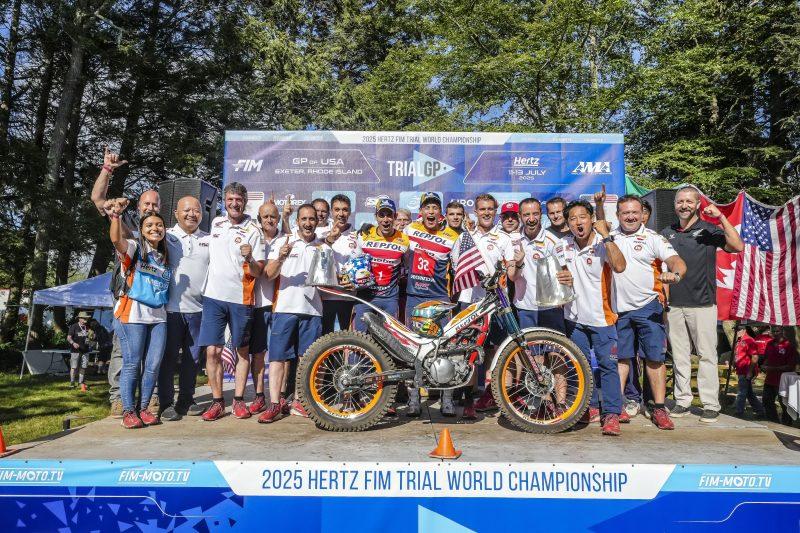 15 de julio de 2025.- El domingo, el Campeonato Mundial de TrialGP celebró su último día de visita a Exeter, Estados Unidos, y Repsol Honda realizó una actuación excepcional. Gabriel Marcelli mejoró sus resultados y logró su primera victoria a nivel mundial, mientras que Toni Bou se acercó a su título 19 al aire libre.