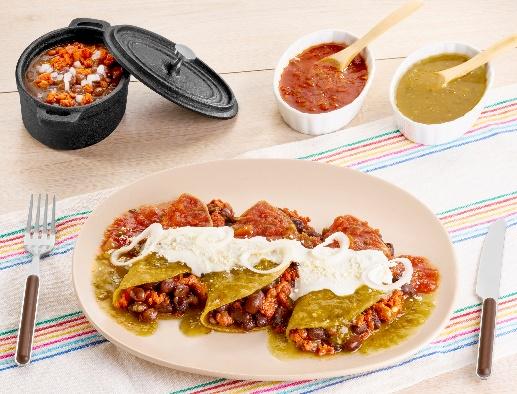 Las enchiladas tienen raíces que se remontan a la época prehispánica, cuando las civilizaciones mesoamericanas ya utilizaban tortillas bañadas en salsas de chile como parte de su alimentación diaria². Durante la época colonial se incorporaron ingredientes europeos como el queso, la crema y las carnes, dando origen a una receta que simboliza la fusión entre culturas³. Hoy, las enchiladas son protagonistas de las mesas mexicanas, desde comidas familiares hasta celebraciones regionales. Para disfrutarlas en casa, nada como añadir una Salsa Casera Mexicana Tatemada, que potencia su sabor auténtico.