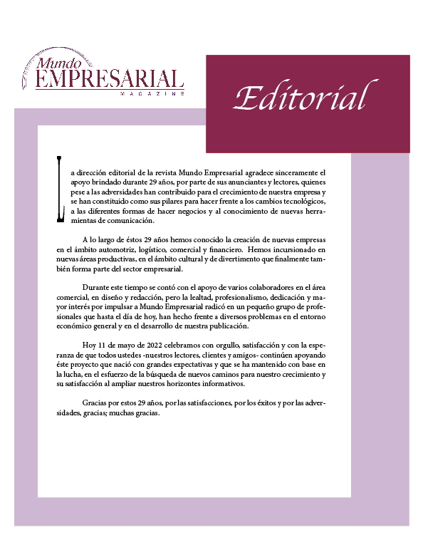 Mundo Empresarial en su Vigésimo Noveno Aniversario, agradece el apoyo incondicional de sus anunciantes y lectores, quienes son lafortaleza y motivación de nuestra revista. Navegación de entradas Los beneficios laborales más valorados por las madres en MéxicoNubank anuncia un nuevo beneficio para sus empleados: Licencia de paternidad de 120 días que incluye a todo tipo de familias