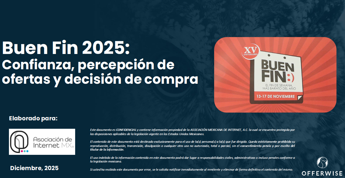Con el objetivo de conocer la percepción tanto de los compradores como de los no compradores durante la quinceava edición de El Buen Fin, la Asociación de Internet MX, realizó de la mano de la firma Offerwise, empresa líder de investigación de mercados en América Latina, un estudio integral que reveló datos sobre las preferencias de los consumidores durante el evento de El Buen Fin y la percepción que tuvieron respecto a las promociones.