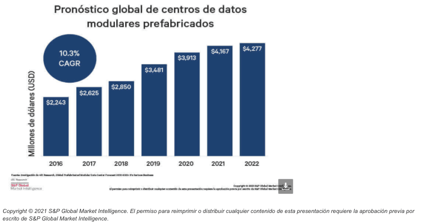 A medida que los centros de datos modulares pasan a primer plano, estos están siendo utilizados por empresas de todos los tamaños. Para 2022, el mercado global de centros de datos prefabricados alcanzará un valor de $4200 millones, más que los $2600 alcanzados en 2017, de acuerdo con 451 Research, una compañía de investigación tecnológica.