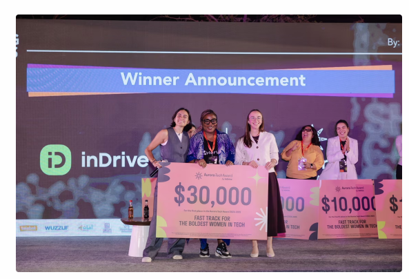 Fundado por inDrive en 2020, el Premio Aurora Tech se creó para apoyar startups lideradas por mujeres que no solo innovan, sino que también generan un impacto real. A lo largo de los años, este reconocimiento se ha convertido en una plataforma para dar voz a personas que a menudo no son escuchadas en el mundo de la tecnología. La edición de 2025 fue un éxito, con 2,018 solicitudes de 116 países. Las finalistas representaron a diversas regiones y trabajan en áreas como salud digital, inteligencia artificial, finanzas y educación, entre otras.