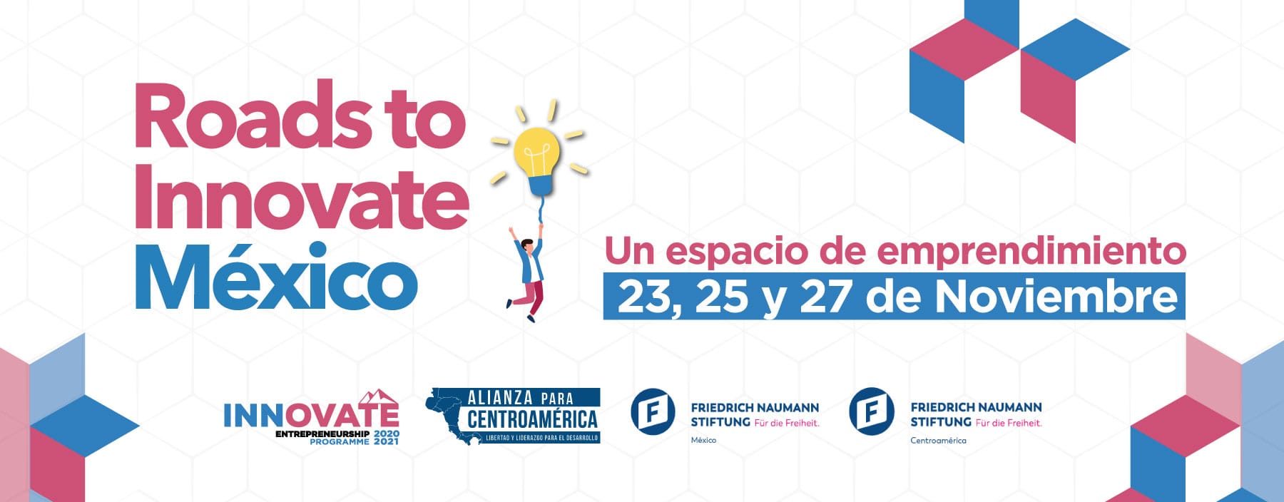 México, Ciudad de México, noviembre de 2020.- Los próximos 23, 25 y 27 de noviembre se llevará a cabo el primer Roads To INNOVATE 2020 en México que organiza la Fundación Friedrich Naumann para la Libertad y la Alianza para Centroamérica, y que será un evento en el que todo el público podrá participar. De esta manera, emprendedores, innovadores e interesados en el tema, podrán conocer los proyectos participantes, y acceder al gran contenido de las mentorías y pláticas programadas.