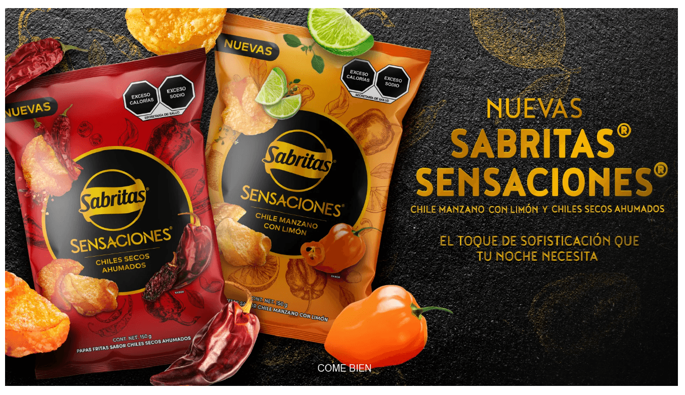 Desde hace casi 80 años, Sabritas® es la botana favorita del país y está en el top-of-mind de los mexicanos por su amplio portafolio de productos y combinaciones icónicas, como sus sabores Adobadas, Limón, Habanero y sabor Original con una pizca de sal. Por ello, la marca trabaja para renovar sus estrategias y alinearse a las necesidades que demanda el consumidor. Además, con esta nueva línea Sabritas se introduce en la categoría upper-mainstream, la cual apuesta por sabores sofisticados de la mano de precios accesibles.