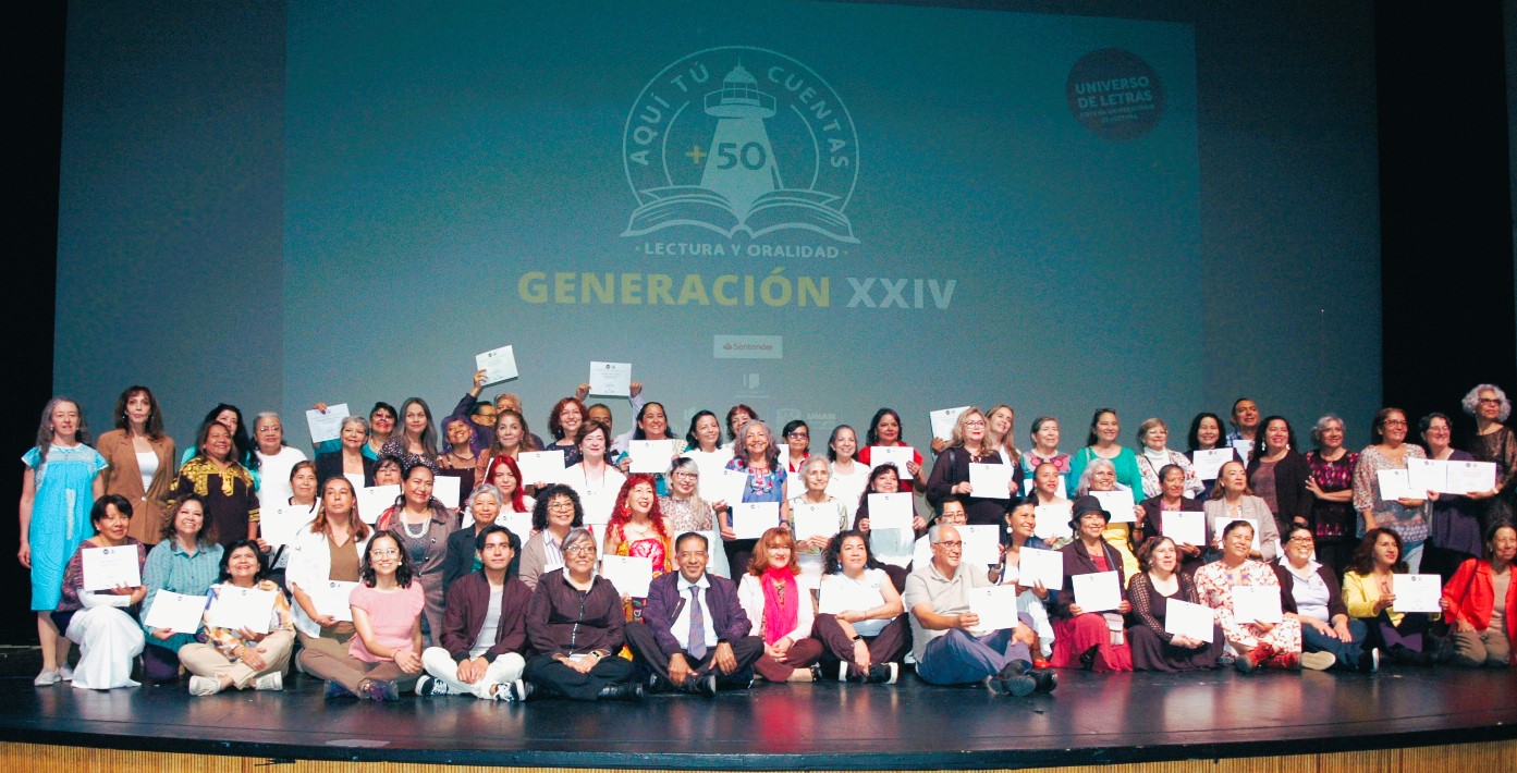 La Universidad Nacional Autónoma de México a través de la Coordinación de Difusión Cultural y de la Dirección de Literatura y Fomento a la Lectura, dio continuidad a su programa Aquí Tú Cuentas +50 con su generación vigésimo cuarta; integrada por hombres y mujeres de la tercera edad quienes fueron capacitados durante ocho meses en técnicas de lectura en voz alta, expresión oral, conversación escrita, narración y comprensión de textos con el objetivo de que se conviertan en promotores de lectura.
