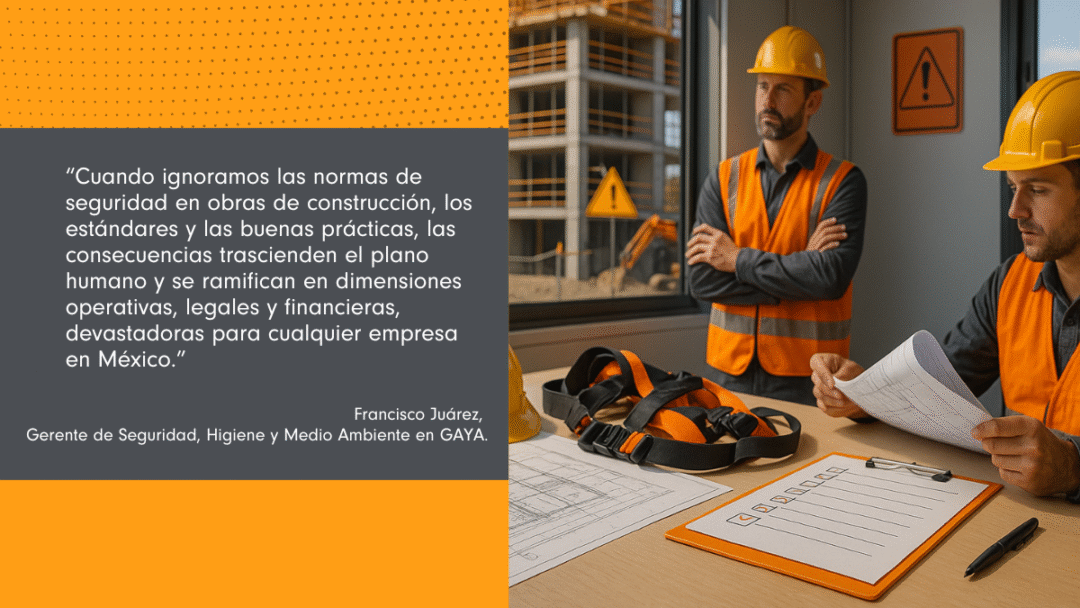 Cuando ocurre un accidente en obra, el impacto no se queda en el parte médico. De acuerdo con Francisco Juárez, Gerente de Seguridad, Higiene y Medio Ambiente en GAYA. El impacto “llega en forma de suspensiones de obra, investigaciones legales, sanciones administrativas, aumento en las primas de seguro, conflictos laborales, retrasos en los cronogramas y pérdida de confianza por parte de clientes e inversionistas. A esto se suma un daño reputacional que, en un mercado cada vez más vigilado por la opinión pública y las redes sociales, puede ser irreversible”.