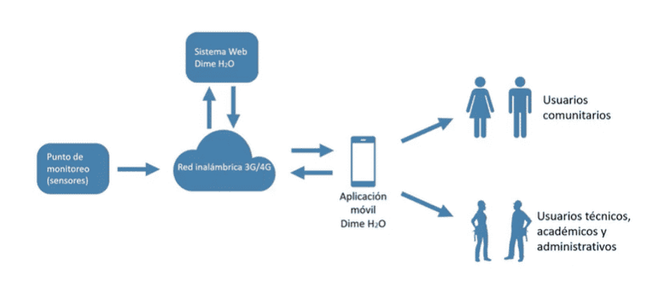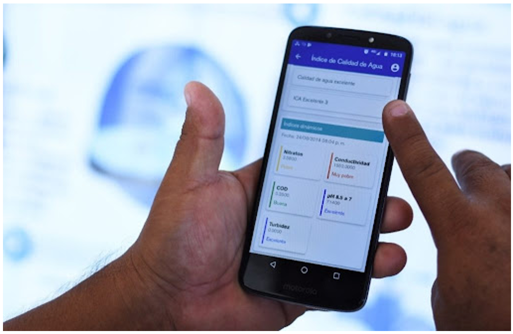 | En dicha aplicación móvil, los ciudadanos pueden informar de problemas para mejorar la administración del agua, reportar las fugas de agua, y también acceden al Índice de Calidad del Agua (ICA) del punto monitoreado y que abastece a sus comunidades.El ICA incluye indicadores de cloro residual, nitratos, conductividad, COD, pH y turbiedad que, a través de una “semaforización”, muestra la condición de índice entero y de los parámetros mencionados.El sistema es capaz de enviar alertas a las autoridades del agua cuando los parámetros de calidad del agua se encuentran fuera de rango, lo que permite una acción correctiva inmediata. |