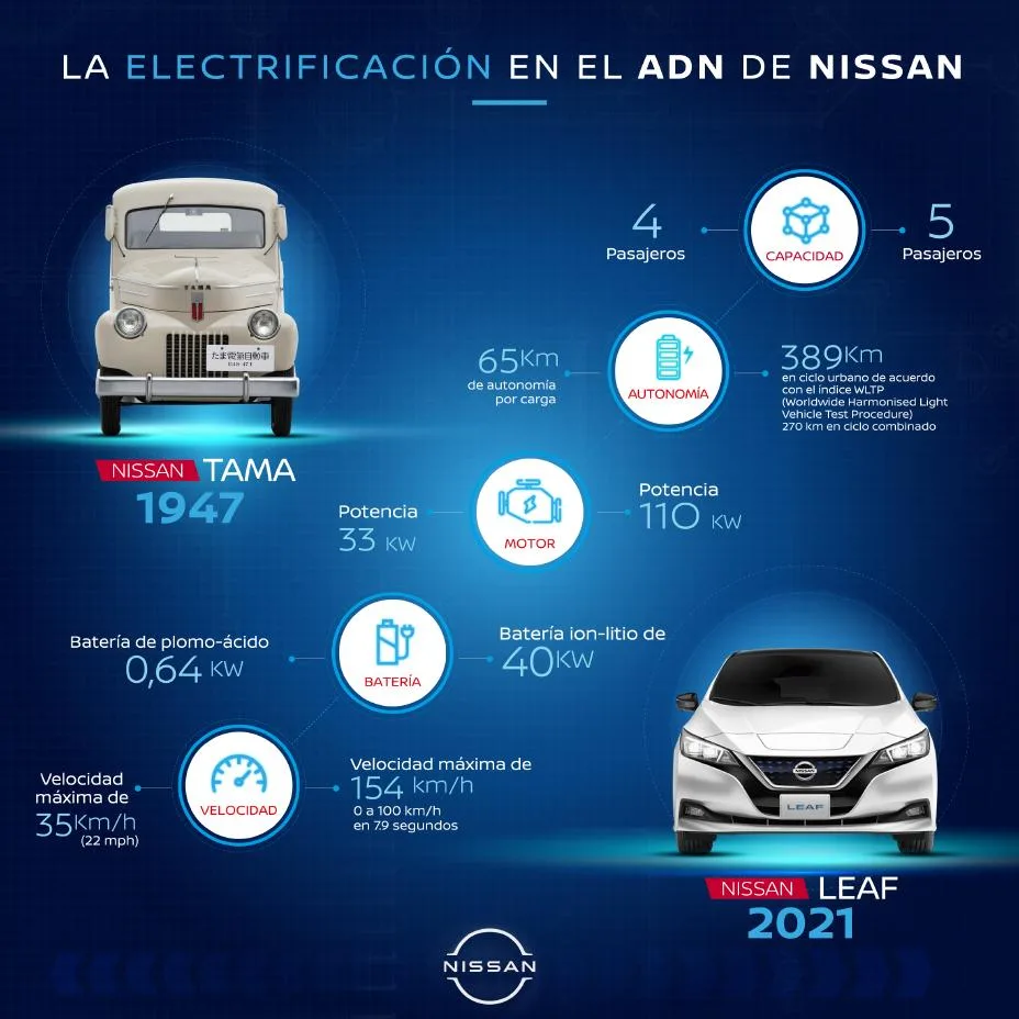 Casi 75 años de investigación e innovación: Tama y LEAF, dos íconos en la historia de la electromovilidad mundial, se contrastan para demostrar la solidez de Nissan en este camino