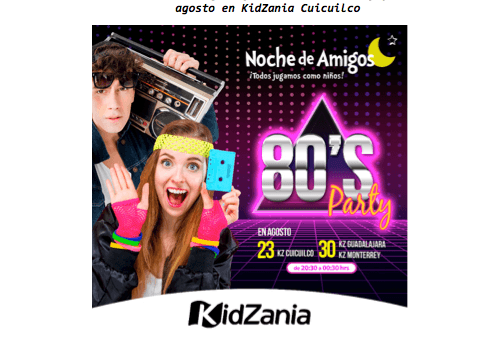 ¡No te pierdas la Noche de Amigos KidZania, 80´s Party! •
